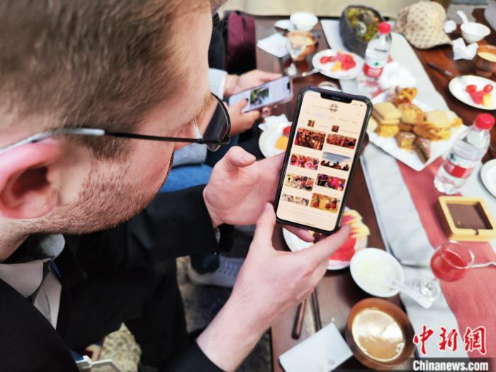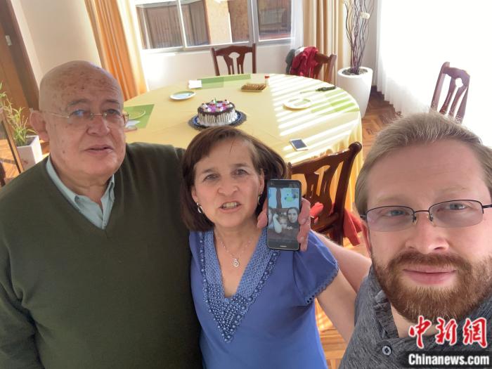 克里斯给记者展示手机里玻利维亚的图片。中新网刘越 摄