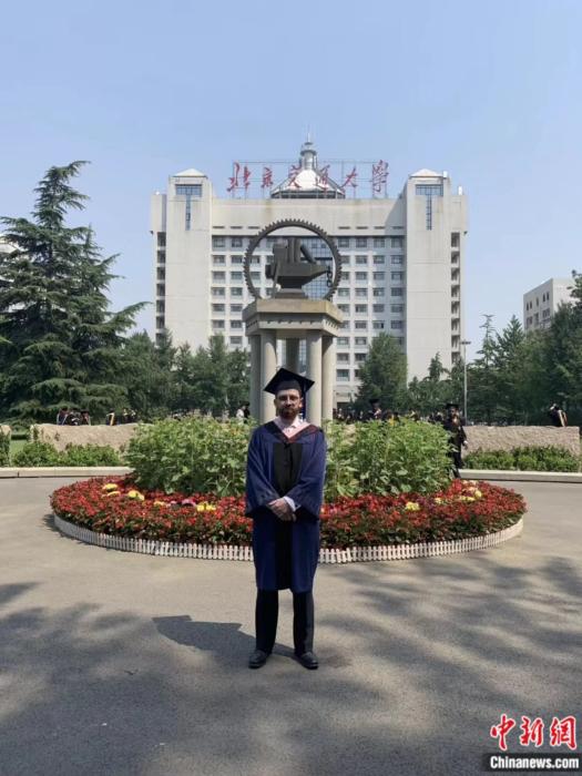 克里斯在北京交通大学的硕士毕业照。受访者供图