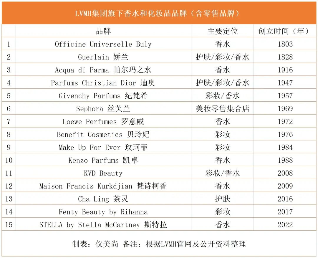 其中,香水和化妆品业务、美妆零售共囊括了15大品牌,主要涵盖香氛、护肤和彩妆品类,如迪奥、娇兰、纪梵希、贝玲妃和丝芙兰等。