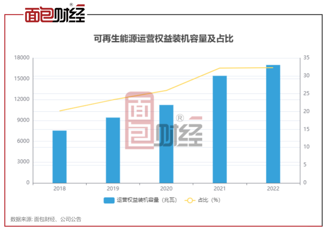 可再生能源业务:装机占比32.3%,近两年贡献主要利润来源