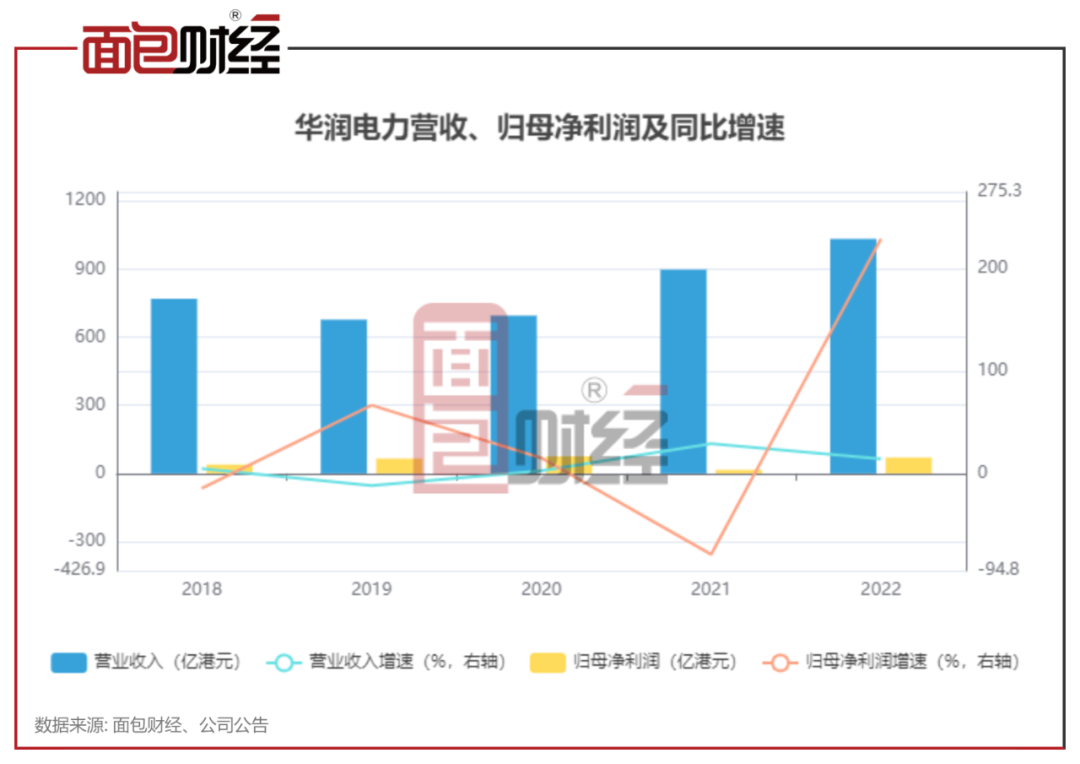 随着火电业务亏损收窄,2022年,华润电力业绩大幅反弹,归母净利润同比增长229.4%至70.42亿港元。
