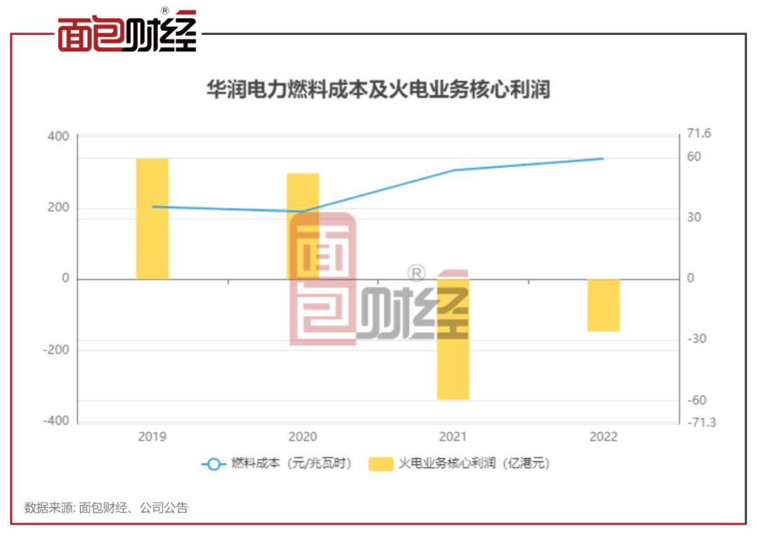2019年和2020年,华润电力燃料成本较低,这两年间火电业务核心利润均超过50亿港元。2021年和2022年,受燃料成本上升等因素影响,该业务亏损均较大。