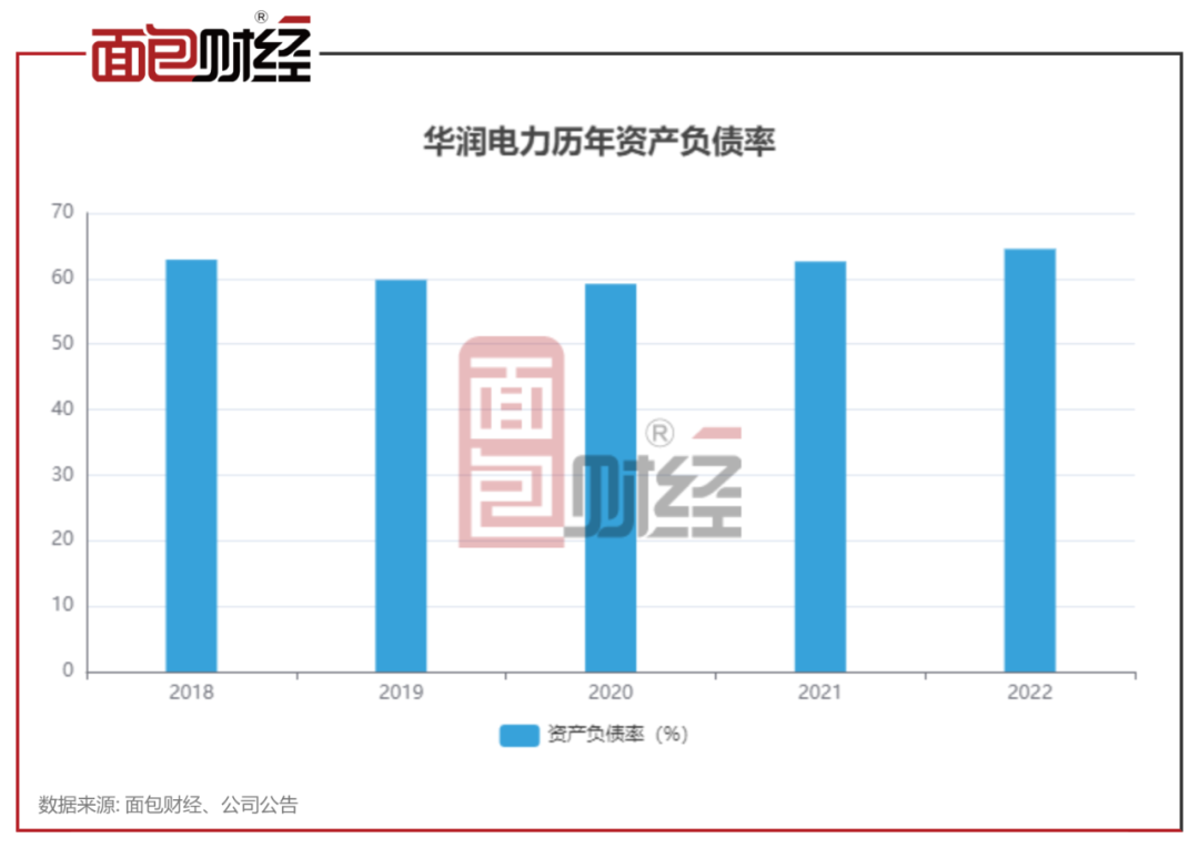 近年来,华润电力的资产负债率上升较为明显,由2020年的相对低点约59.19%上升至2022年约64.5%。