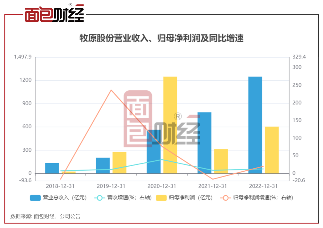 2020年,受非洲猪瘟影响,生猪价格高企,牧原股份吃到这轮猪周期的红利,当年实现营业收入562.77亿元,同比增长178.31%,归母净利润274.51亿元,同比增长348.97%。