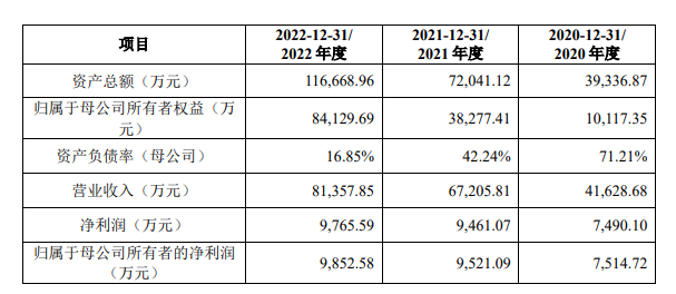 公司是一家主要从事新能源电池电解液材料、电子化学品研发、生产和销售的高新技术企业,为国内主要厂商提供多款锂离子电池电解液新型锂盐及功能性添加剂等产品,是国内少数具备多品种锂离子电池电解液材料制造和创新能力的供应商。公司于2020年、2021年及2022年分别实现营业收入4.16亿元、6.72亿元及8.14亿元;分别实现归母净利润7514.72万元、9521.09万元及9852.58万元。