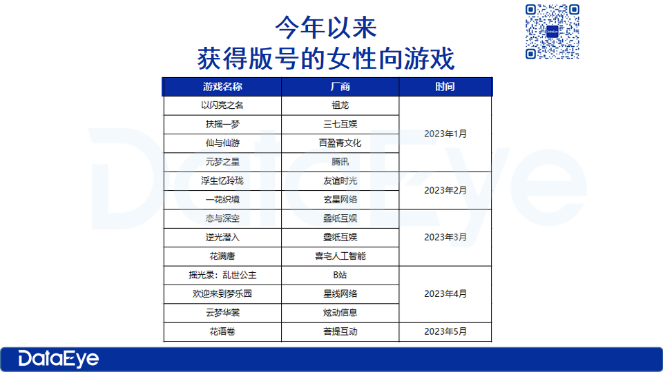 今年来,获得版号的女性向游戏,还有叠纸的两款,以及腾讯、三七、B站的新品。