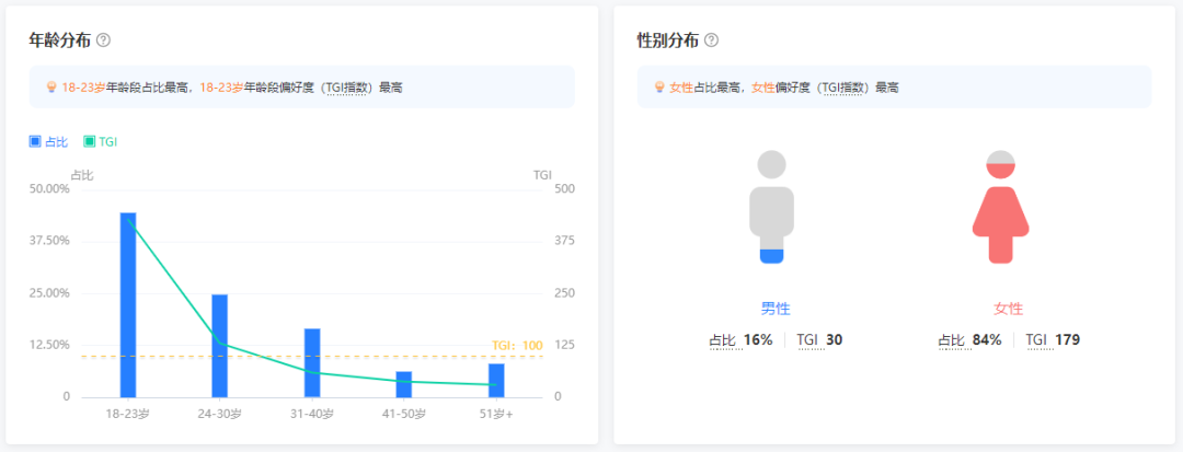 根据巨量算数、新红数据显示“以闪亮之名”关键词关联用户画像女性占比84.5%,男性占比15.5%,其中以18-25岁年龄段的年轻群体为主,占比高达70%。