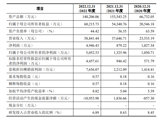 公司主要从事电容器和锂电池行业的智能制造装备的研发、生产和销售。公司于2020年、2021年及2022年分别实现营业收入2.35亿元、3.76亿元及5.88亿元;分别实现归母净利润1050.71万元、1325.96万元及5052.53万元。
