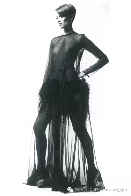 说起透视装,在现代文胸被发明后,第一位敢于真空上阵的女性是Danielle Luquet de Saint-Germain——伊夫·圣罗兰的Muse。在上个世纪80年代,着一条透明的裙子出现在大家面前,简直是一件不可想象的事情。“有伤风化”、“放荡”、“低级”,这些标签被贴在了她的身上。只有伊夫·圣罗兰看到了透视装的美,完美展示曲线,披上一层薄纱又不至于太过奔放。于是他把这种风格带到了时装界。