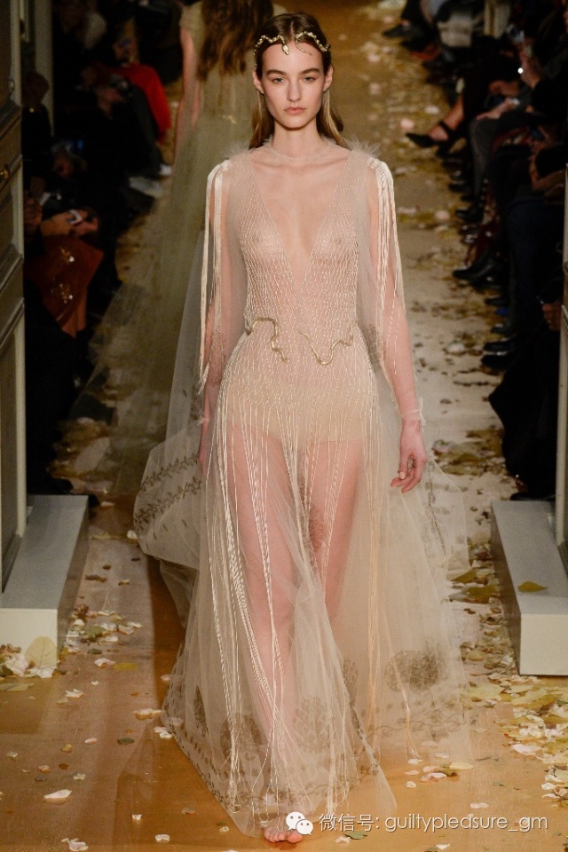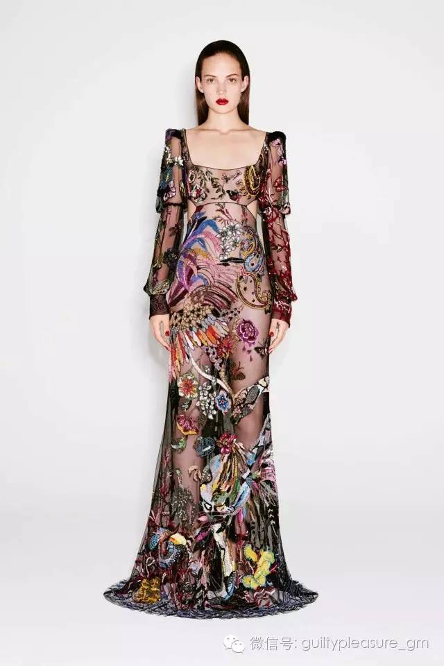 Zuhair Murad 2016 Ready To Wear,大面积的刺绣勾勒出了模特的曼妙,恰到好处的把隐私部位遮掩,与裸露的透纱相得益彰。