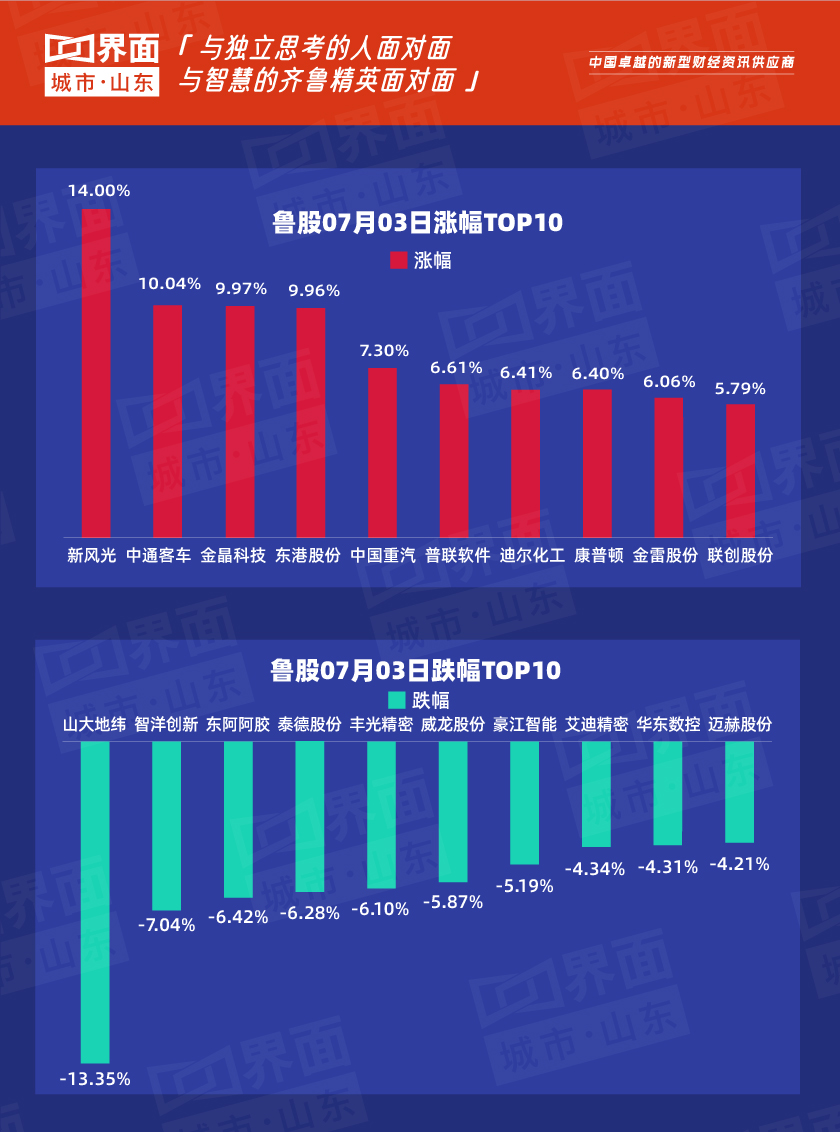 7月3日,山东省内沪深京板块有197只个股上涨,95只个股下跌。