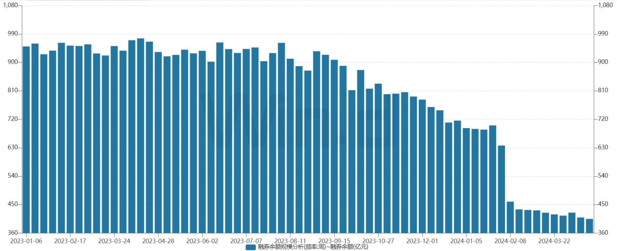 图:2023年以来A股融券余额变化情况(截至4月18日)