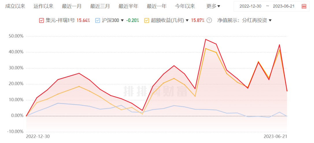 以前“公募一哥”任泽松为例,其操盘的私募基金一直走着大开大合的路线。私募排排网显示,2022年,任泽松业绩几乎处于同行底部,全年净值跌幅超过50个点,经历了净值曲线的腰斩。2023年,任泽松亲自操盘的“集元-祥瑞1号”彻底翻身,连续经历几波大涨,到4月28日时年内涨幅达到48.14%,此后虽然有所回调,但在6月16日年内涨幅再度冲到44.8%,显著跑赢同期沪深300指数。