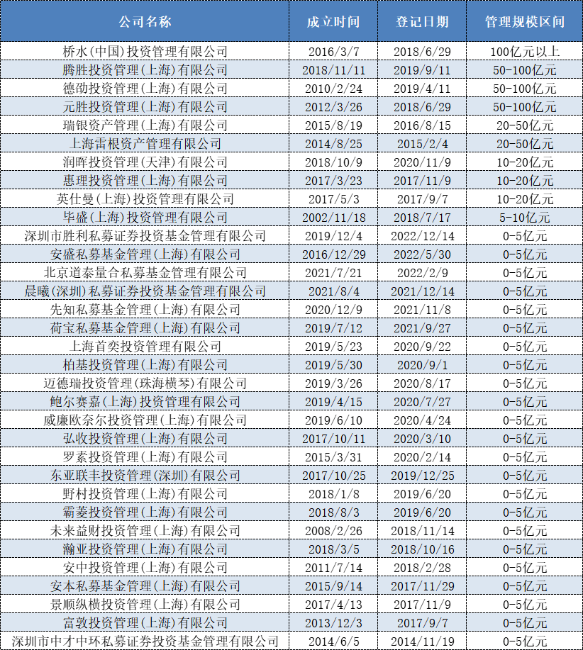 表格:以往备案的33家外商独资私募证券投资基金管理人情况