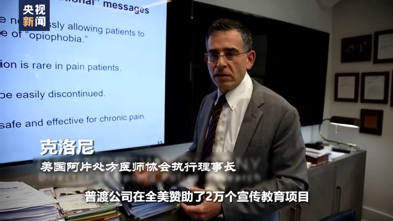 美国阿片处方医师协会执行理事长 克洛尼:奥施康定上市后的6年时间里,普渡公司在全美赞助了2万个宣传教育项目。阿片类药物的制造商和经销商在10年内花费8.8亿美元,目的便是阻止更谨慎的处方。他们的花费比美国的枪支游说集团还要高8倍。