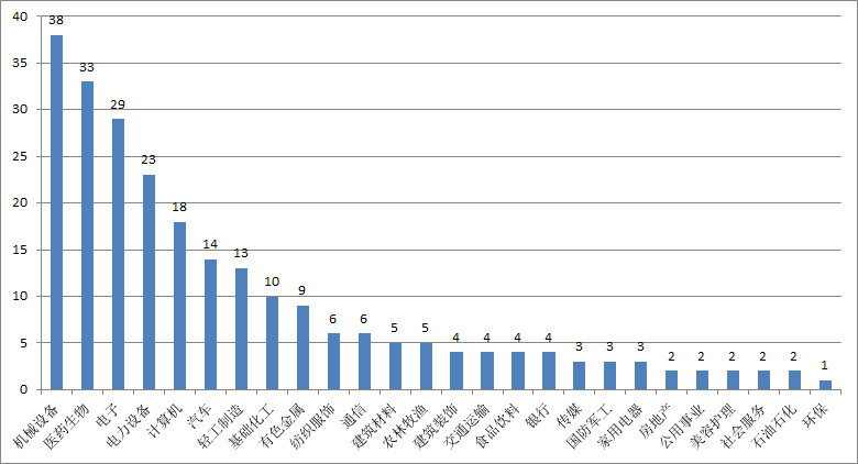 以申万一级行业分类为参考,上述245家上市公司分布于26个不同的行业之中,其中机械设备行业上市公司数量最多,达到了38家,医药生物、电子行业紧随其后,被调研的上市公司分别为33家和29家,电力设备、计算机、汽车、轻工制造、基础化工等行业被调研的上市公司也都不少于10家,以上8个行业被调研的上市公司合计178家,占比72.65%。