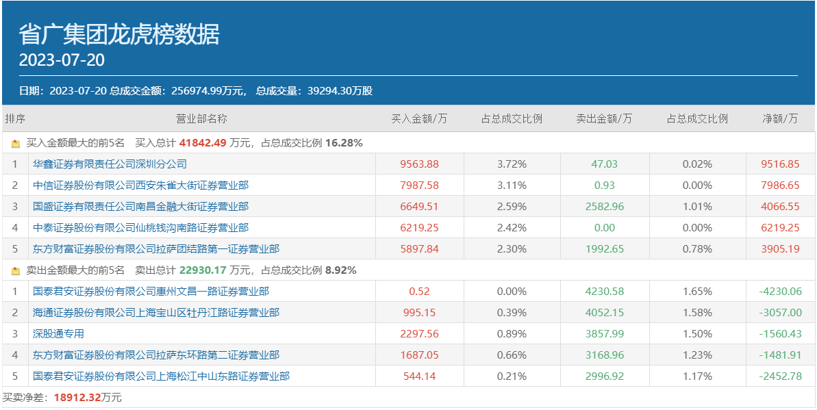龙虎榜数据显示,知名游资湖州劳动路的常用席位华鑫证券深圳分公司高居省广集团当日买方榜首,买入金额高达9563.88万元,加上前一个交易日买入的4686.97万元,上述席位在最近2个交易日内合计买入省广集团高达1.43亿元。除此之外,知名游资方新侠的常用席位中信证券西安朱雀大街也出现在省广集团7月20日买方第二位,买入金额为7987.58万元。