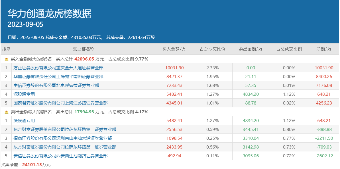 需要注意的是,虽然9月5日华力创通继续获得了多路市场游资的积极豪买,但实际上近日机构资金却在卖出该股,9月4日龙虎榜数据显示,4个机构专用席位出现在华力创通卖方前五位中,合计卖出2.14亿元。