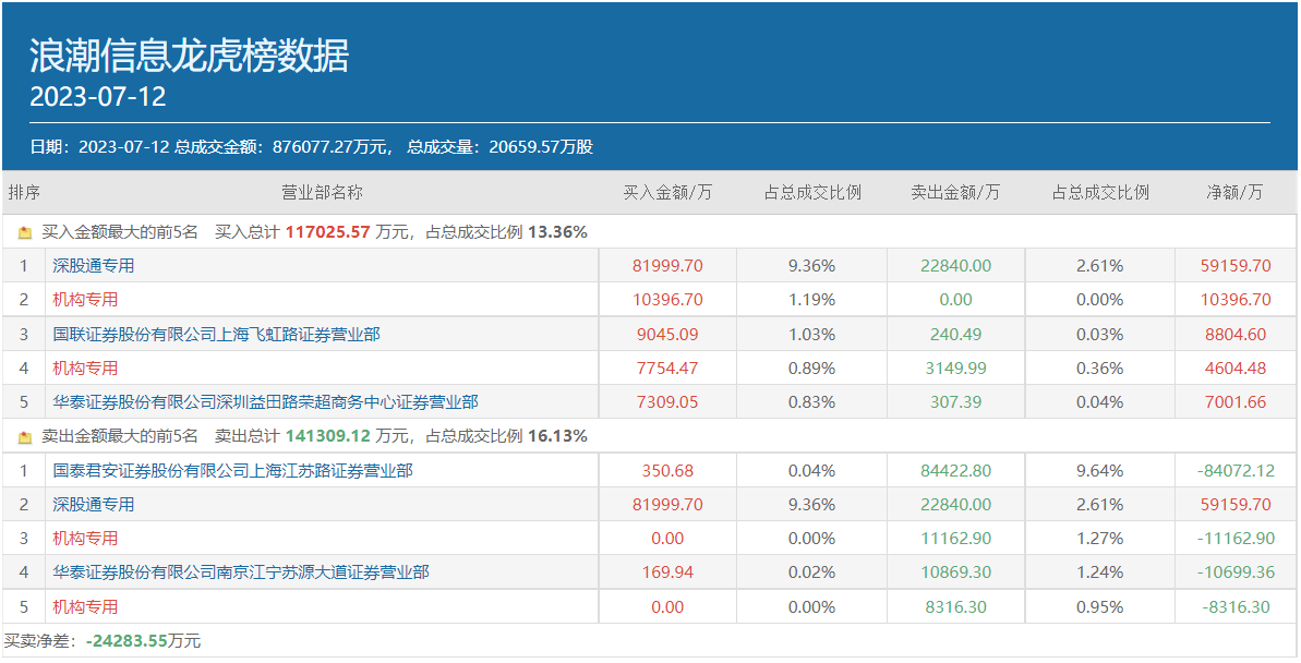 值得一提的是,在章盟主7月12日大举卖出浪潮信息的同时,北上资金却在继续豪买该股,龙虎榜数据显示,深股通专用席位当日买入该股8.2亿元,卖出2.28亿元。机构资金对于该股的态度则出现了明显的分歧,其买方前五位中有两个机构专用席位,合计净买入1.5亿元,卖方前五位中亦有两个机构专用席位,合计净卖出1.95亿元。