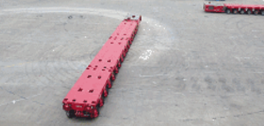 和大绝多数重型平板车一样,1000吨重型平板车可以做到多模式转向和多车协同作业。在运输过程中,这款平板车可以做到原地180°的旋转和45°前后翻转,也可以实现车并车即多车运载,尤其在运输大型船舶的时候,载重量在多车机械组装或者自由组合的情况下可达到50000吨以上。