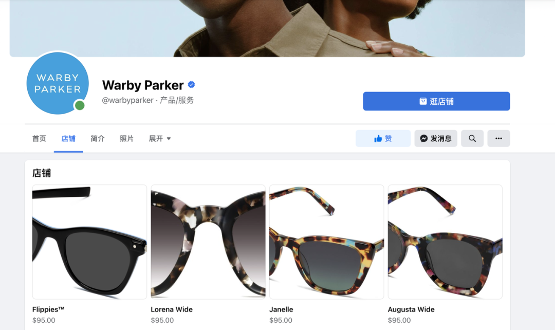 亿邦动力检索数十家品牌商的Facebook主页发现,上到粉丝量过百万的大品牌,下到几百粉丝的小商家,各家Shop页面皆像Warby Parker一般,与以往并无不同,仅用作商品展示和浏览,用户想要购买都需跳转到商家的独立站,甚至也不乏尚未开通Shop、仅通过主页信息展示导流至独立站的。Shop内的商品排列也相对单一,或以纯粹的货架式结构为主,或以顶图突出核心单品、系列商品。