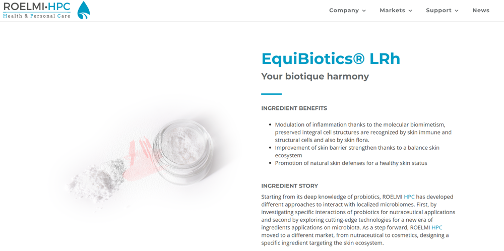 今年3月份,意大利的可持续健康原料研发企业诺尔米ROELMI HPC带来了新成分EquiBiotics LRh(INCI:麦芽糖糊精、乳酸菌)。