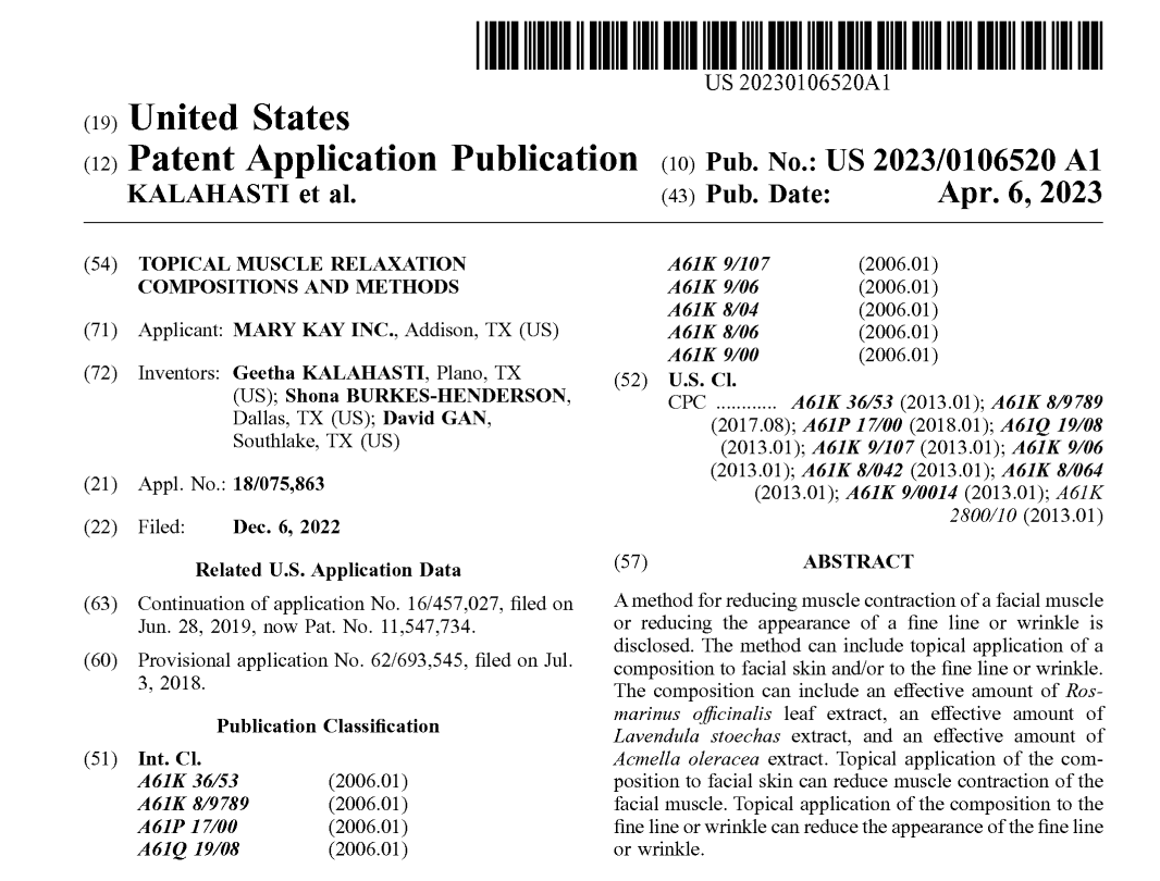 目前,这项研究成果已经申请了专利,名称为《Topical muscle relaxation compositions and methods》(局部肌肉松弛组合物和方法)。根据该专利文件,这三种植物提取物分别为迷迭香叶提取物、薰衣草提取物和千日菊提取物。
