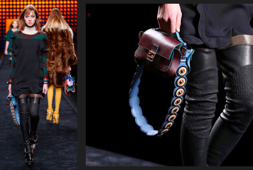 从Fendi 2016春夏系列之后,宽肩带包包的时代就拉开了序幕。一向作为配角存在的肩带这次引起了关注,设计师将很多丰富的内容集中在这条肩带上,加宽了维度。色彩碰撞丰富的肩带一下就炸开了锅,也难怪姑娘们都不去在乎这条肩带可能比包包还贵。而在Fendi 2016秋冬秀场上,老佛爷再次发功,更为炽热浓郁的立体肩带被设计了出来,当然,在意识到这是一个很好的噱头之后, Dior、Burberry、Gucci、Marni、KENZO、Valentino等等都相继推出了宽肩带的包包。