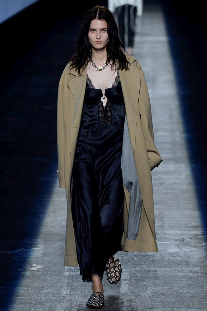 回到我们前面所说,或许很多人不理解睡衣风的存在,因为它穿出来真的就俨然一副睡衣的样子,而如何将睡衣穿得“不像睡衣”才是这个风潮的精髓之处。在这一点上,设计师们颇有心得,Public School用纯黑色的睡衣上衣来搭配超大阔腿裤、Alexander Wang则在睡衣裙外加了一件棒球夹克、又或者像Thakoon一样,用西装来搭配套装的短款睡衣,这之中居然也流露出一些运动风的意味。