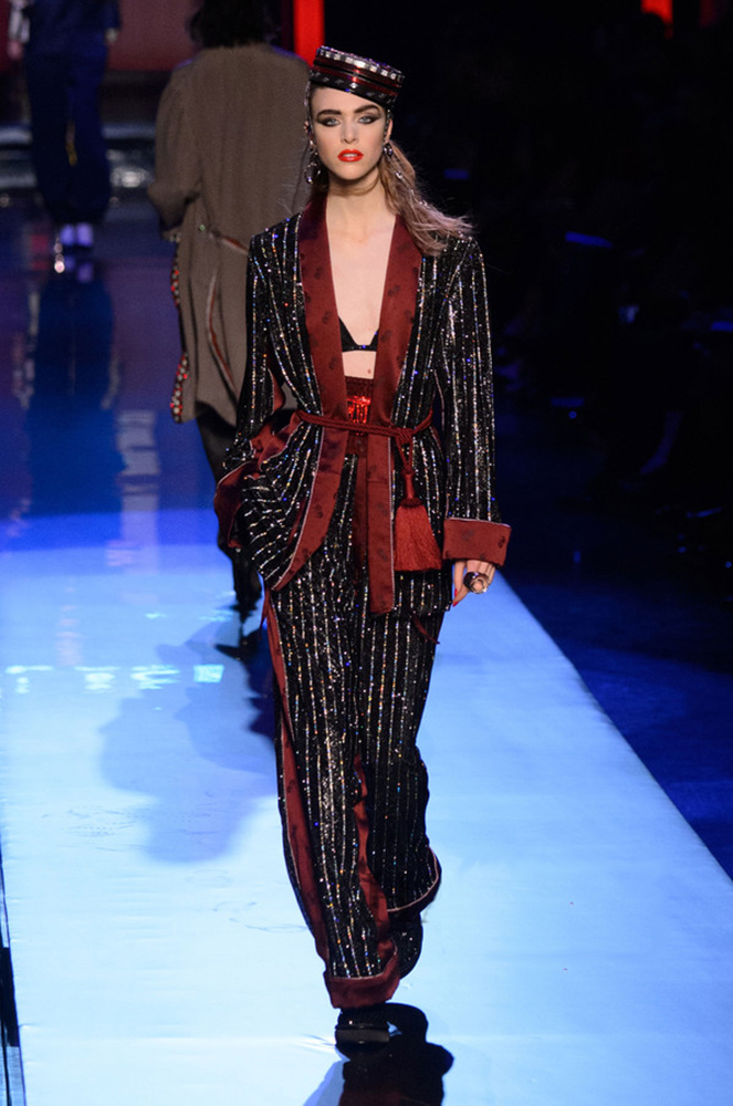 睡衣也在结合各个时间段的流行趋势做出改变。在春夏季高级定制的秀场上, Jean Paul Gaultier以一系列睡衣元素作为开场,融合了经典的80年代风格和剪裁,金属条纹图案的睡衣闪烁着光泽,色泽大胆,模特拿着香槟抽着烟在走猫步。你很难不承认这样的睡衣风潮又带给了你不一样的感官体验。