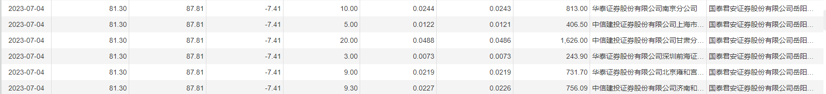 伯特利7月4日大宗交易成交120万股,成交额9756万元,占当日总成交额的13.57%,成交价81.3元,较市场收盘价87.81元折价7.41%。