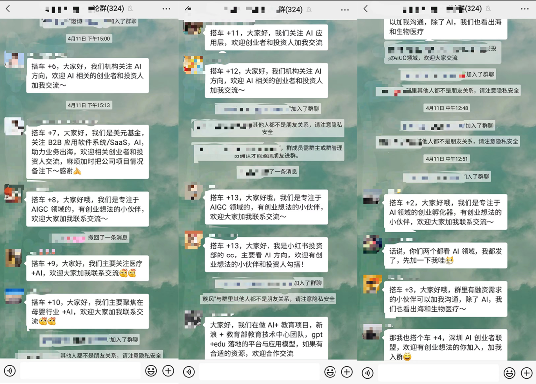 ▲ AI创业群里积极寻找项目的投资人 ▲ AI创业群里积极寻找项目的投资人