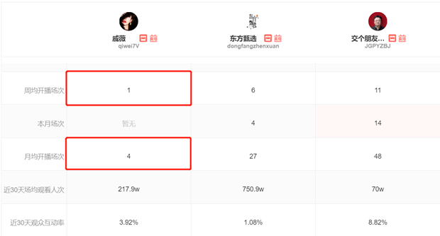 不仅如此,华夏视听教育为与戚薇团队达成独家合作,不惜重金投入4830万,这一金额相当于其2022年全年净利润的近40%。这样大比例的投入下,华夏视听教育短期内难以接入更多的艺人。华夏视听教育虽然省去了孵化的作用,直接获得了头部主播,但问题也很明显,作为明星,戚薇的身份还包含歌手、演员,很难拿出足够的时间直播。根据蝉妈妈数据,戚薇的开播场次远低于东方甄选这类机构。