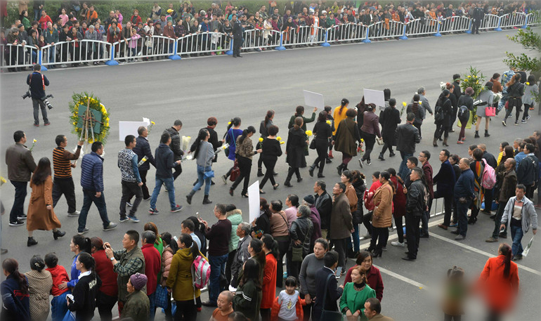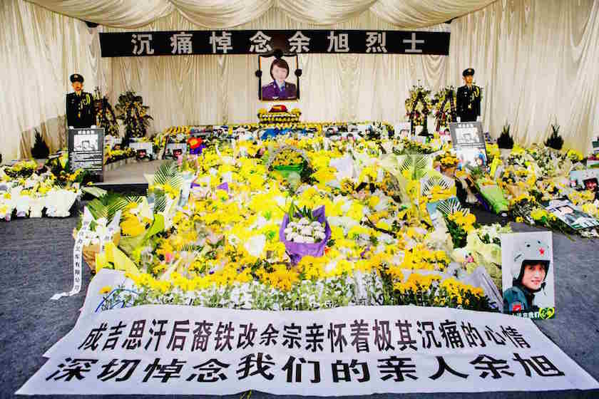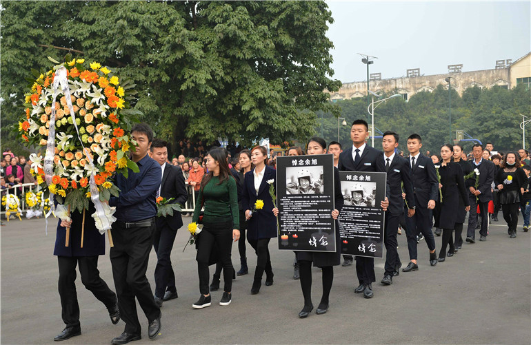 全国各地群众自发赶到四川省崇州市,来送别余旭最后一程。