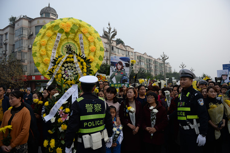 余旭的战友、亲属、母校师生以及社会各界人群陆续前来献花、祭奠。