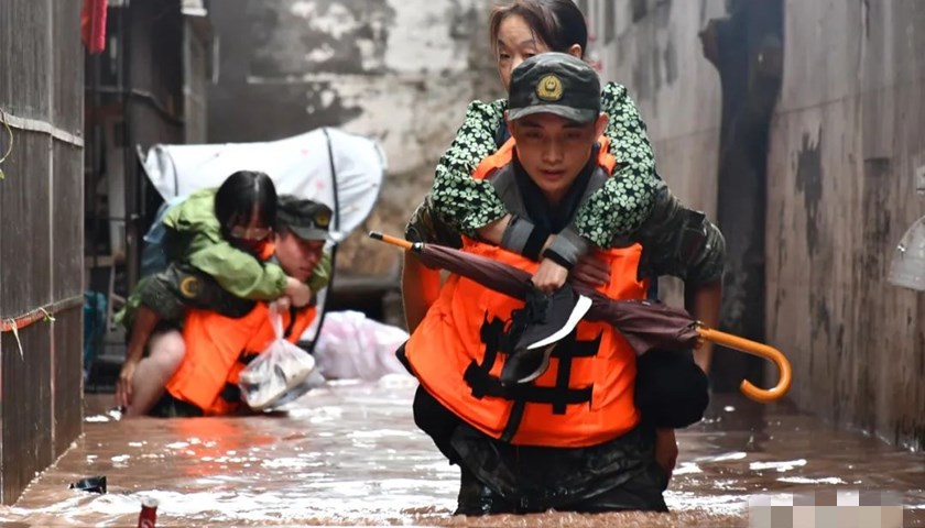 另据“重庆武警”消息,7月4日,万州区五桥街道发生严重内涝,城镇多处道路交通瘫痪,有群众被困家中,生命财产安全受到严重威胁。武警重庆总队执勤第三支队在接到相关部门情况通报后,迅速出动100名兵力担负抢险救援任务,并携带大量抢险救援物资、器材,奔赴一线紧急救援。