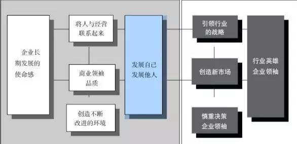 很显然,立足企业长期发展是成为英雄领袖的起点,在对239份问卷的研究过程中,我们发现英雄领袖使人与经营紧密联系,形成立足企业长期发展的方式。
