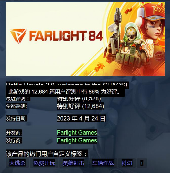 在6月底的新一批版号发放中,《远光84》赫然在列,对应的正是此前海外上线的战术竞技游戏Farlight 84,这中文名属于是暴力直译了。
