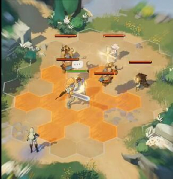 游戏战斗系统从初代的站桩回合制改为六角格半自动战棋,引入地形与法术范围等战斗要素,极大丰富了玩家手动操作的空间。