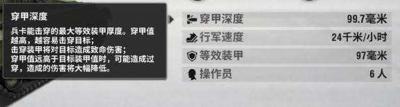 更进一步的是游戏还引入了“过穿”概念,也就是当单位穿甲深度远高于对手的装甲时,炮弹会穿过对方而无法造成足够伤害,这同样会导致伤害降低。体现在游戏中就是轻坦能够克制穿甲深度过高的反坦克炮。