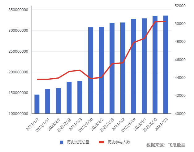 抖音上话题#男士护肤指南 相关视频,近半年浏览量与参与人数皆成上升趋势。