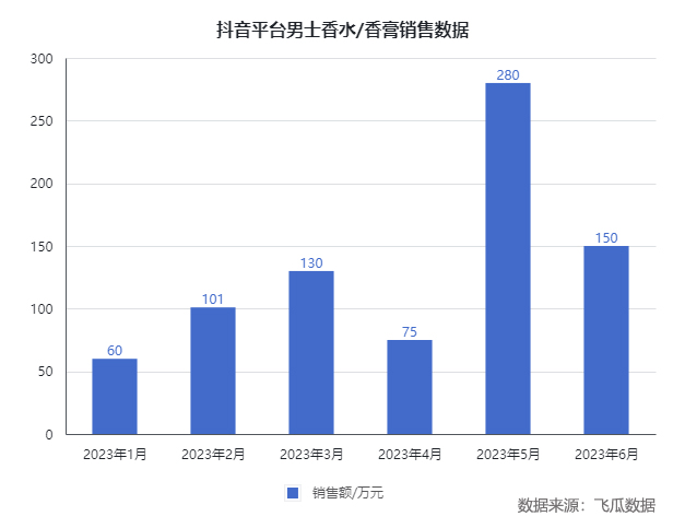 例如男士香水/香膏,今年上半年抖音平台销售额预计最高达796万元。其中,5月正值抖音618好物节期间,销售额大幅上涨。