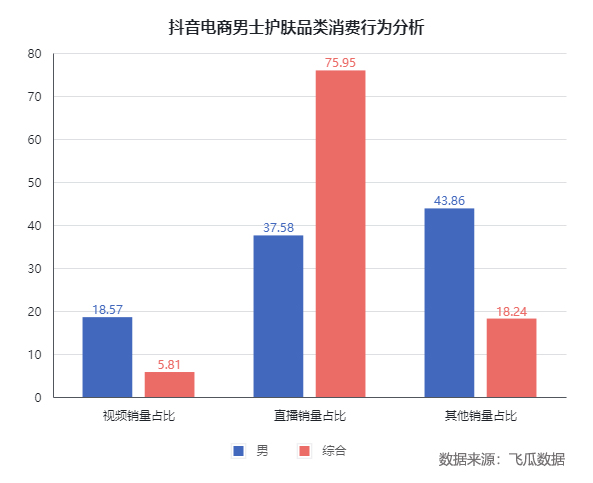 今年1-6月,抖音电商男士护肤品类“非直播和视频带来的抖音销量“成为销量占比最高的一环,销量占比43.86%。此外,男性消费者在浏览“种草视频”后消费的占比高达18.57%,超过男女综合销量占比的3倍,说明了男性消费者更容易被种草视频激发购买兴趣,从而产生购买行为。