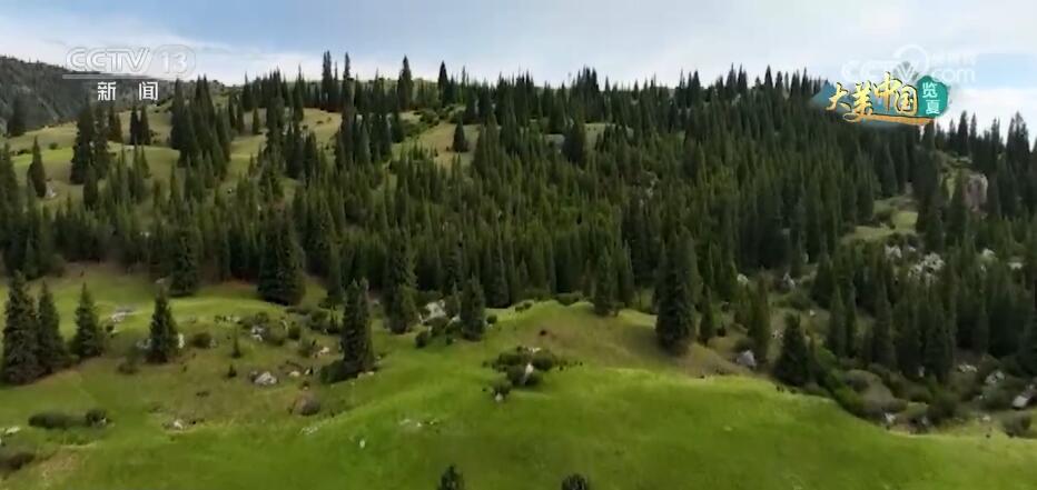 现在看到的就是新疆阿克苏地区的托木尔峰国家级自然保护区,这里高峰云集,植物种类繁多。一棵棵绿树屹立在陡峭的山坡上,苍劲有力。放眼望去,远处雪山皑皑、云缠雾绕,与绿树交相辉映,构成了托木尔峰自然保护区的绝美风光。