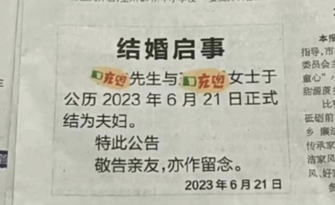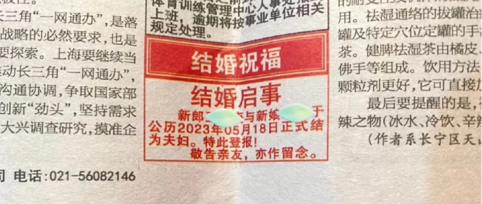 以前大家结婚,爱发朋友圈、或者微博抖音,现在开始登报纸了。