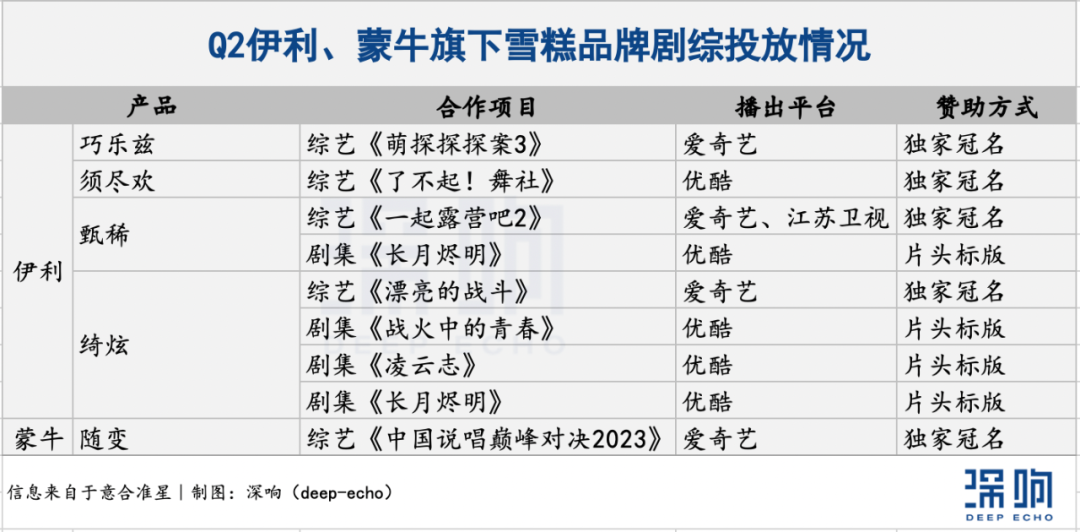 综艺冠名由伊利、蒙牛牢牢把占,和路雪则“避其锋芒”主攻大剧,几乎包揽了Q2热播的所有剧集。