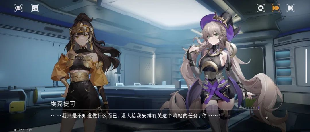 到这里,《环行旅舍》已经输了太多,以致于让当时的我产生这就是一款“凑数”产品的错觉。但实际当我开始体验游戏的主线剧情后,我才知道好家伙原来大的在这儿。熟悉的站桩式立绘对话组成了99%的剧情体验,全程没有一点演出,转场全靠黑屏白屏,角色表情拆分少的可怜,没有配音,动态效果,甚至连CG都没有。(还特别性冷淡