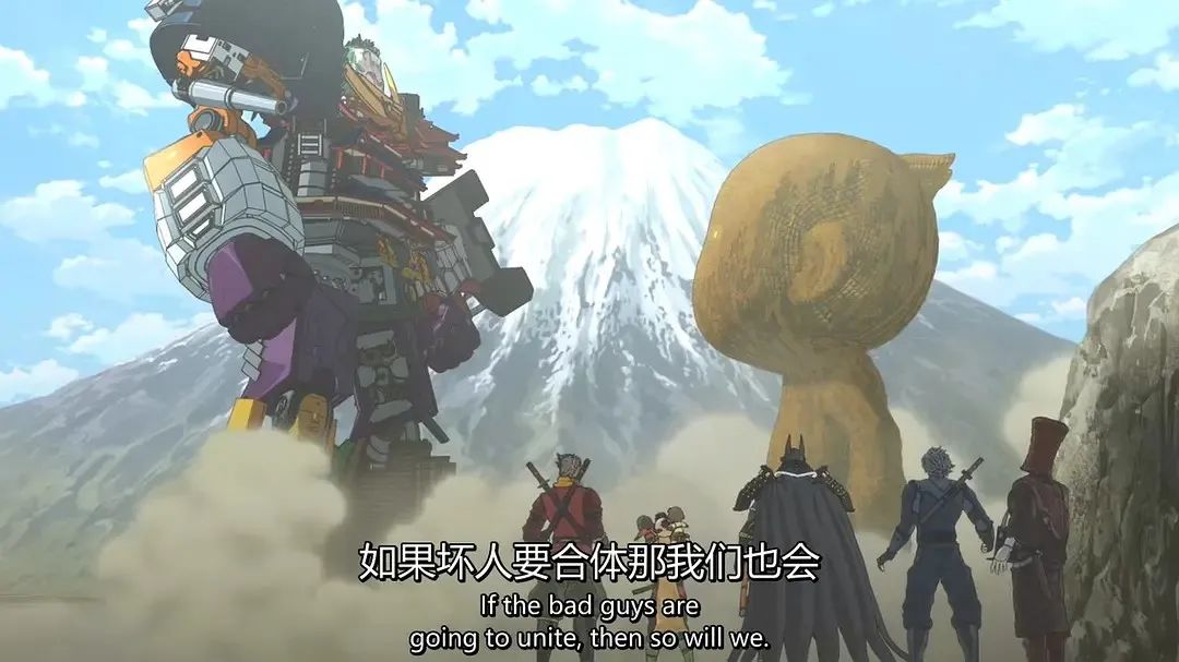 在电影里,不仅有会结印的蝙蝠侠、蝙蝠摩托,还有忍者军团,以及高科技城堡变身的机器人,合体后的巨型蝙蝠侠,依然由机器人奉献出最激烈的战斗——不由得让人感叹一句:任何全球知名的大IP的日本本土化影视化,最终结果都是萝卜片。