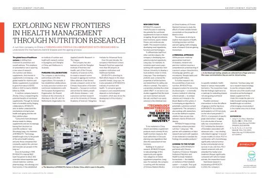 6月15日,国际权威科学杂志Nature首次推出中国营养研究增刊,发布了以营养研究探索健康管理新领域为主题的采访文章,重点报道了汤臣倍健关于PCC1(原花青素C1)、专利益生菌等多个前沿研究成果,汤臣倍健科学营养战略及初步成效受到全球行业杂志重点关注和认可。