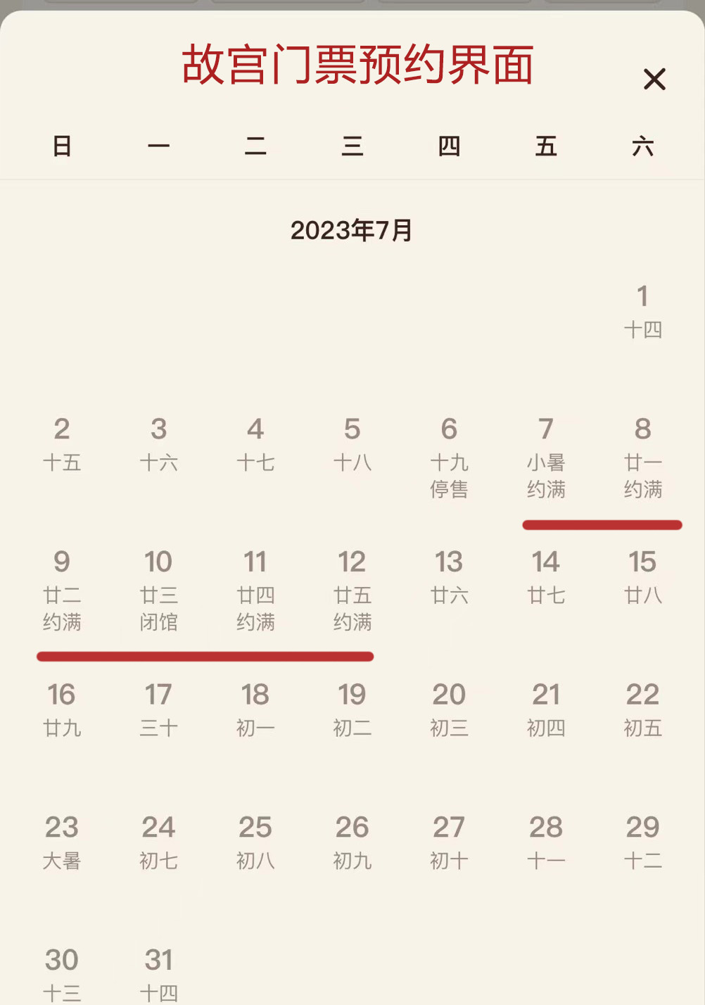 浙江的游客程先生对界面新闻表示,为了抢故宫的票,他连续三天每天从早上8点抢到10点,好不容易抢到票,没想到游览当天气温达到了40度。从安检开始就排起了长队,买水也需要排队很久。而故宫内部阴影处较少,游览的大部分时间都要经历暴晒,当天上午他就目睹了救护车接走中暑晕倒的游客。原本他还计划去圆明园游览,但逛完故宫当晚就买了第二天回浙江的票。